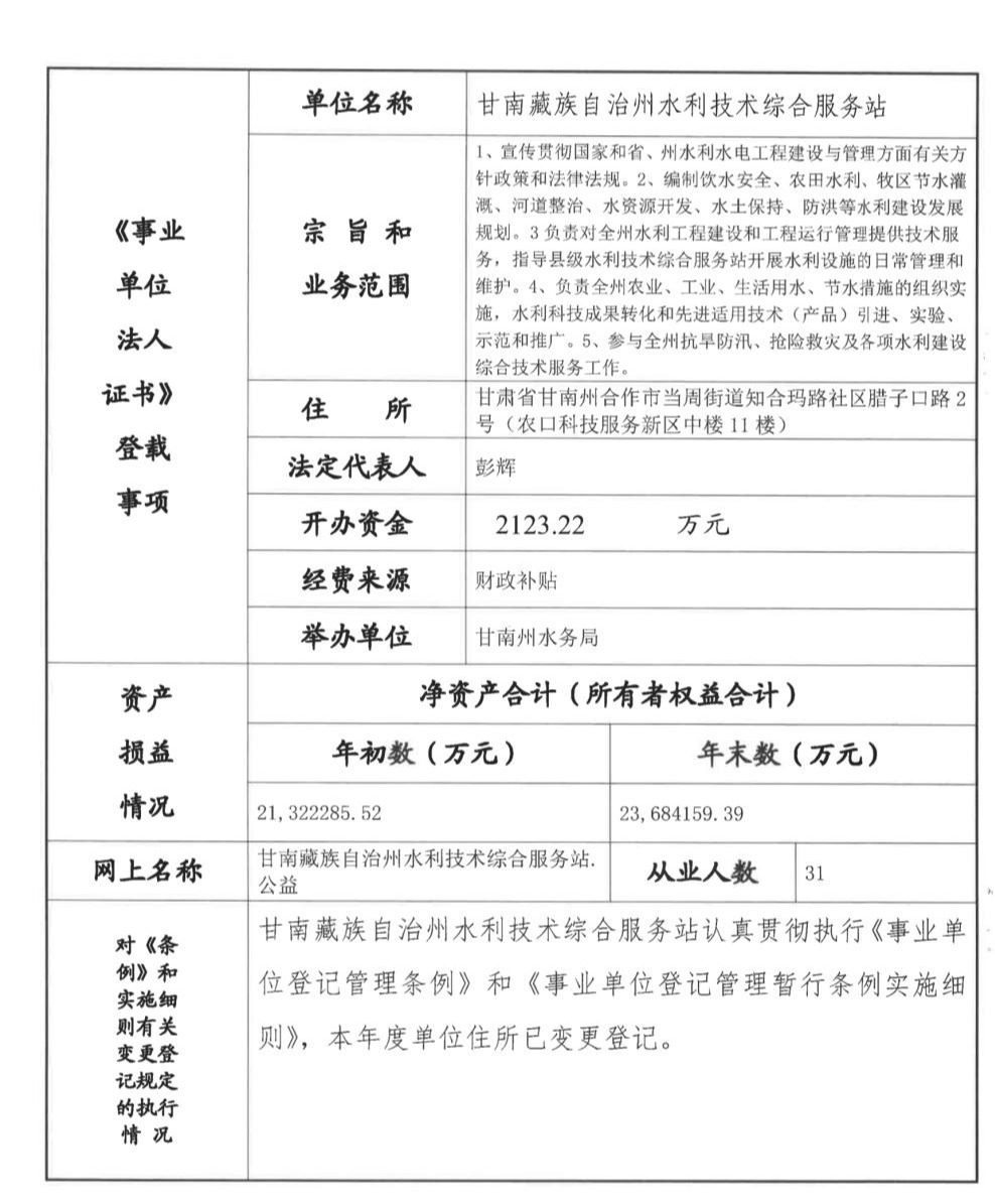 甘南州水利技术综合服务站2025年度事业单位法人报告书