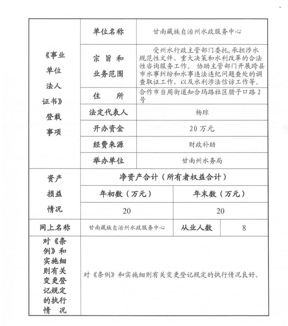 甘南州水政服务中心2025年度事业单位法人报告书.pdf