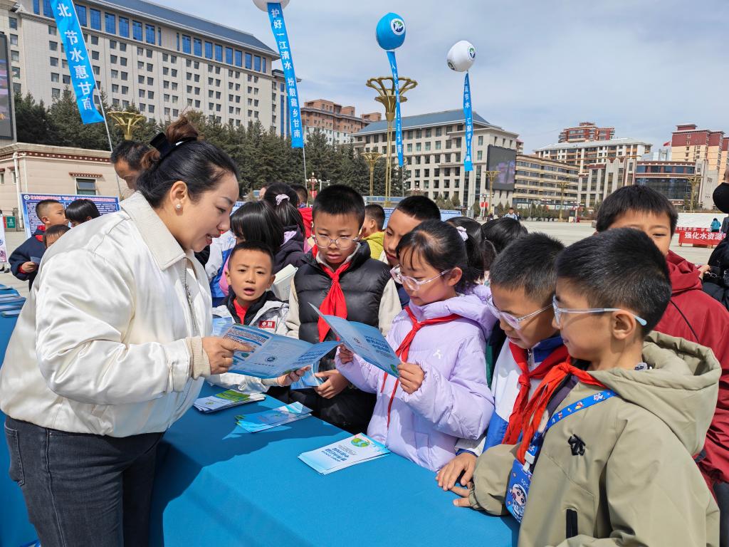 活动采取线上线下相结合的方式,多维度扩大宣传覆盖面。在城区主干道,335辆出租车车载屏滚动播放节水宣传标语,广场电子大屏与甘南电视台同步连续播放公益宣传短片,营造出各方联动、广泛参与的浓厚氛围。本次活动共发放各类宣传资料1000余份,以及手提袋、纸杯、抽纸、学生笔袋等宣传品600余份,接受群众咨询200余人次。