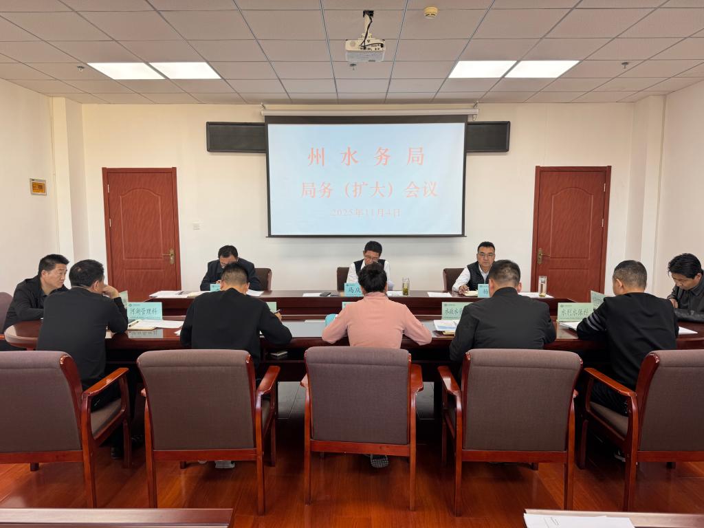为深入贯彻落实全州前三季度经济形势分析推进会议精神,全力打好今年水利工作收官战,11月4日下午,州水务局局党组书记、局长马庆平主持召开局务(扩大)会议,传达学习全州前三季度经济形势分析推进会议精神,安排部署贯彻落实工作。局班子成员,各科室、各单位负责人参加会议。